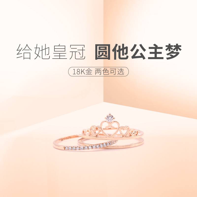 双层皇冠戒指18K金钻戒创意情侣指环女戒求婚戒指七夕礼物送女友
