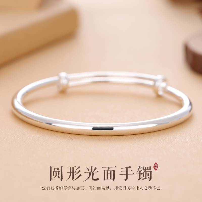 光面S925纯银手镯女韩版学生森系银饰手环女维拉银镯子百搭银手镯