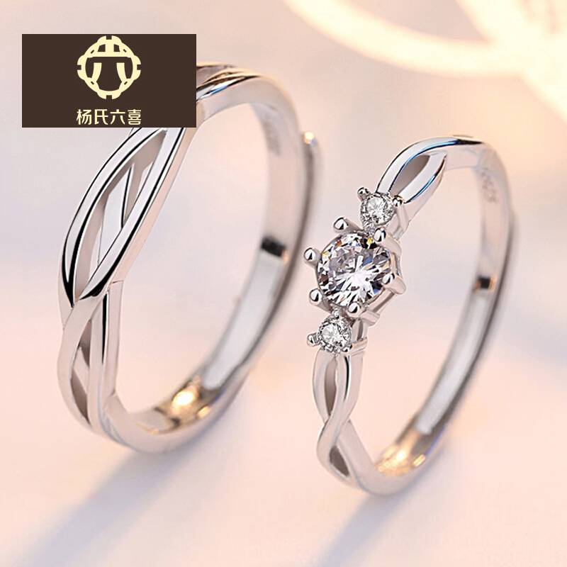 香港杨氏六喜情侣戒指一对纯银戒指男女士活口对戒学生指环
