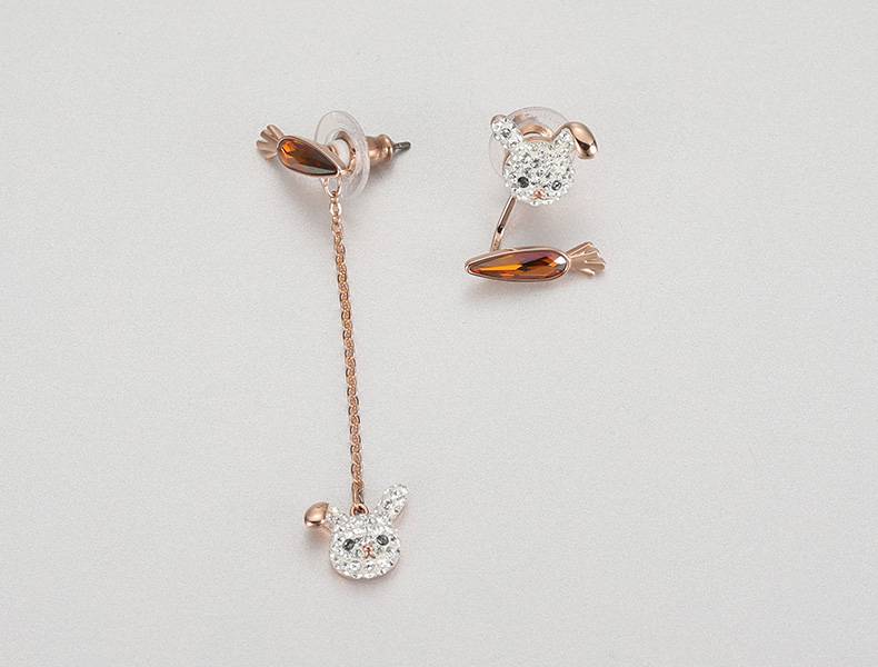施华洛世奇耳钉可爱兔子胡萝卜不对称耳线穿孔耳环时尚耳饰女