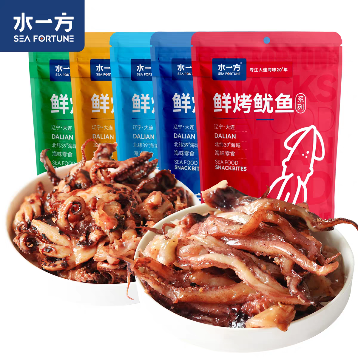水一方现烤鱿鱼须大连特产原味鱿鱼头碳烤川麻铁板鱿鱼丝海鲜零食 9.90 已售:0件