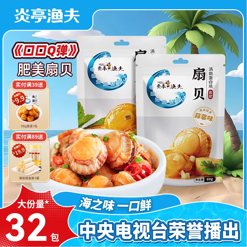 炎亭渔夫蒜蓉扇贝即食休闲海味小零食香辣解馋海鲜办公室熟食海鲜 999.00 已售:3件