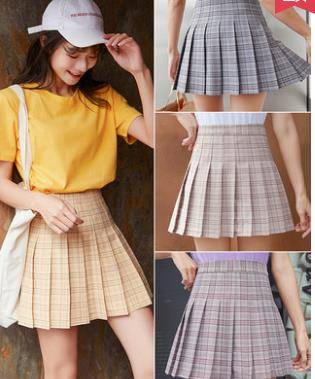 格子百褶裙女夏新款显瘦大码a字小短裙黑白色裙裤秋冬高腰半身裙