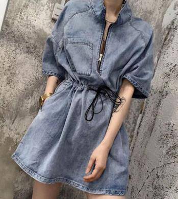 超火的牛仔连衣裙女a字收腰显瘦收缩韩版小个子连体裙子夏季新款