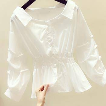 2020年春秋季新款洋气泡泡袖白衬衫女装韩版收腰显瘦长袖上衣小衫