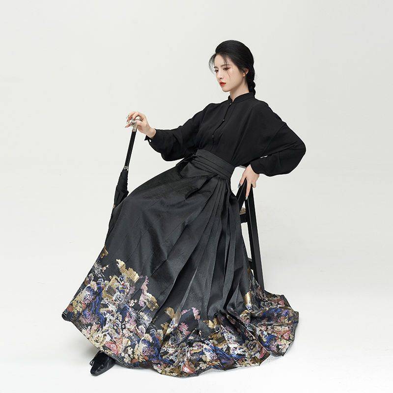 汉服明制[螺钿山水]国风立领短衫仿妆花马面裙秋冬日常