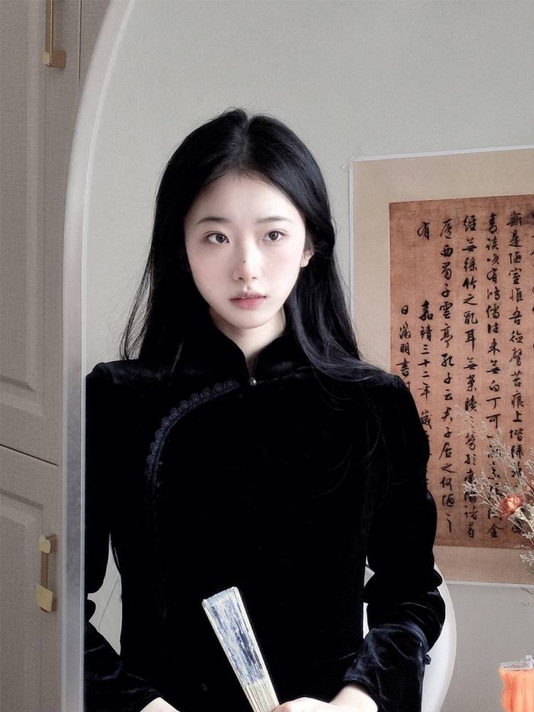 新中式国风改良旗袍年轻少女黑色丝绒连衣裙子女新款2022年秋冬季