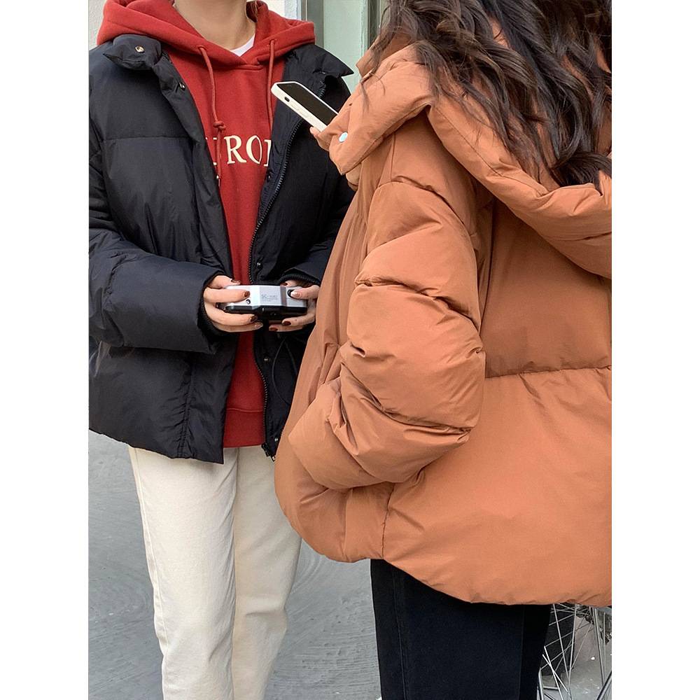新款韩版白鸭绒连帽加厚简约短款羽绒服女