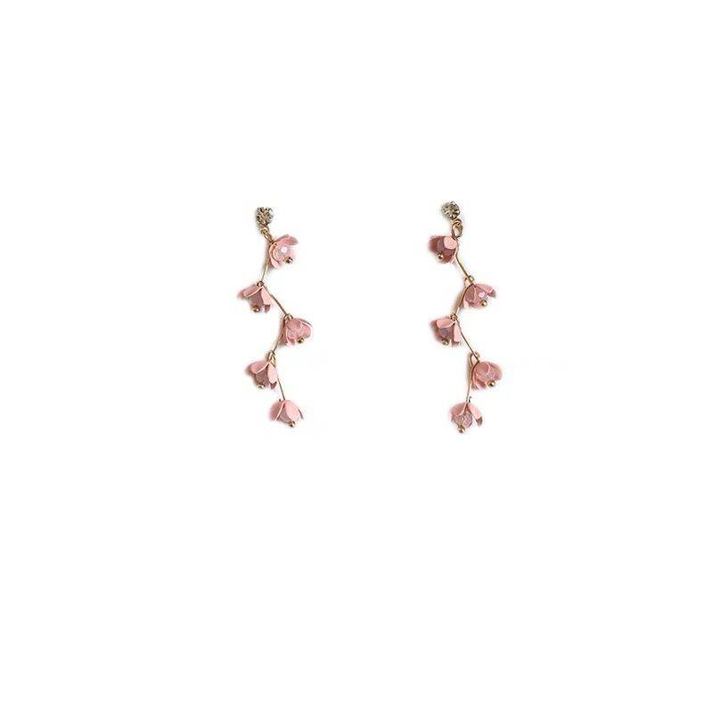 高级感小众显瘦925纯银针粉色花朵流苏耳环女气质长款耳坠耳钉潮