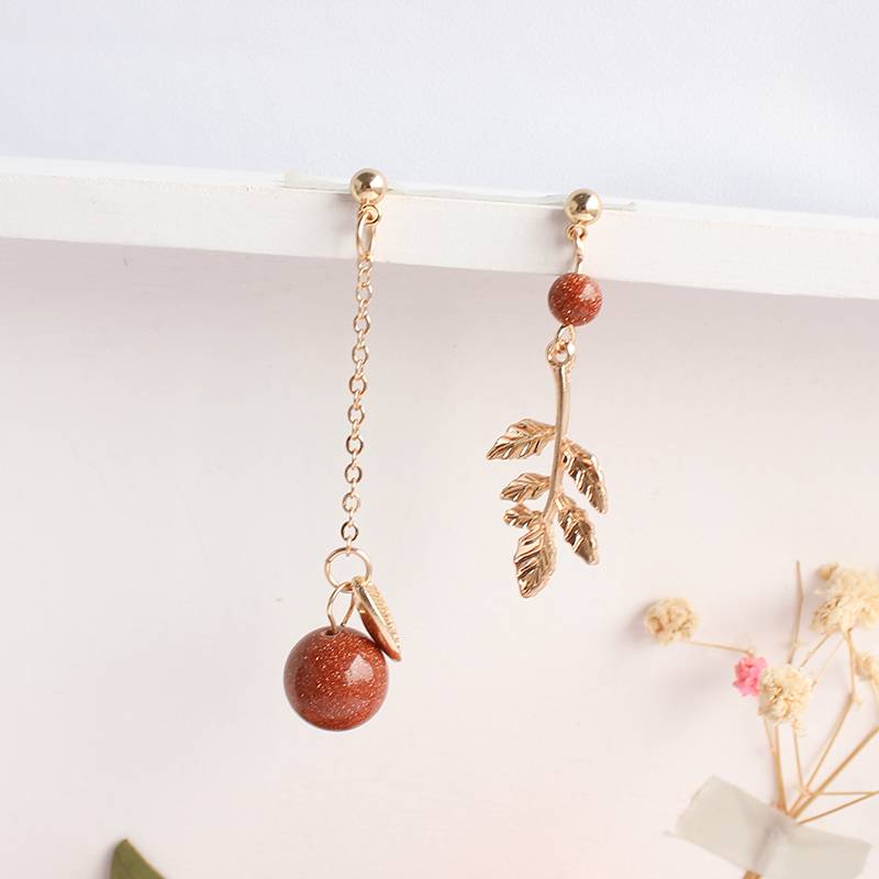 韩国韩版复古长款流苏耳环设计感不对称沙石叶子耳坠无耳洞耳夹女