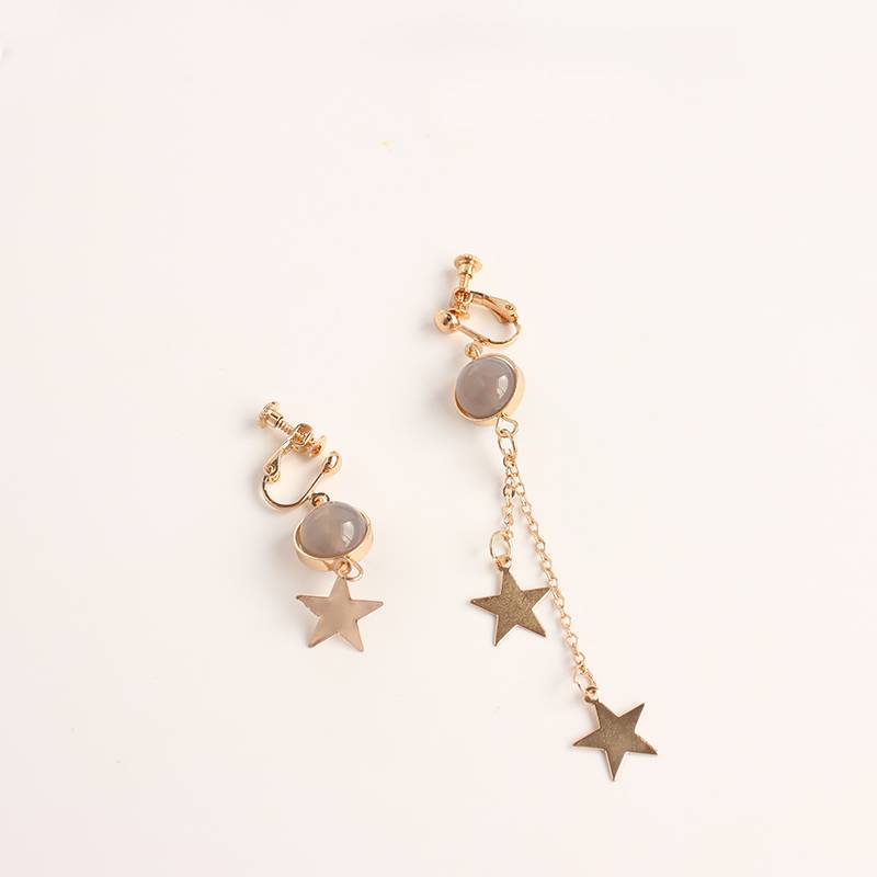 韩国韩版精致可爱灰色玛瑙长款不对称五角星星耳坠无耳洞耳夹耳环