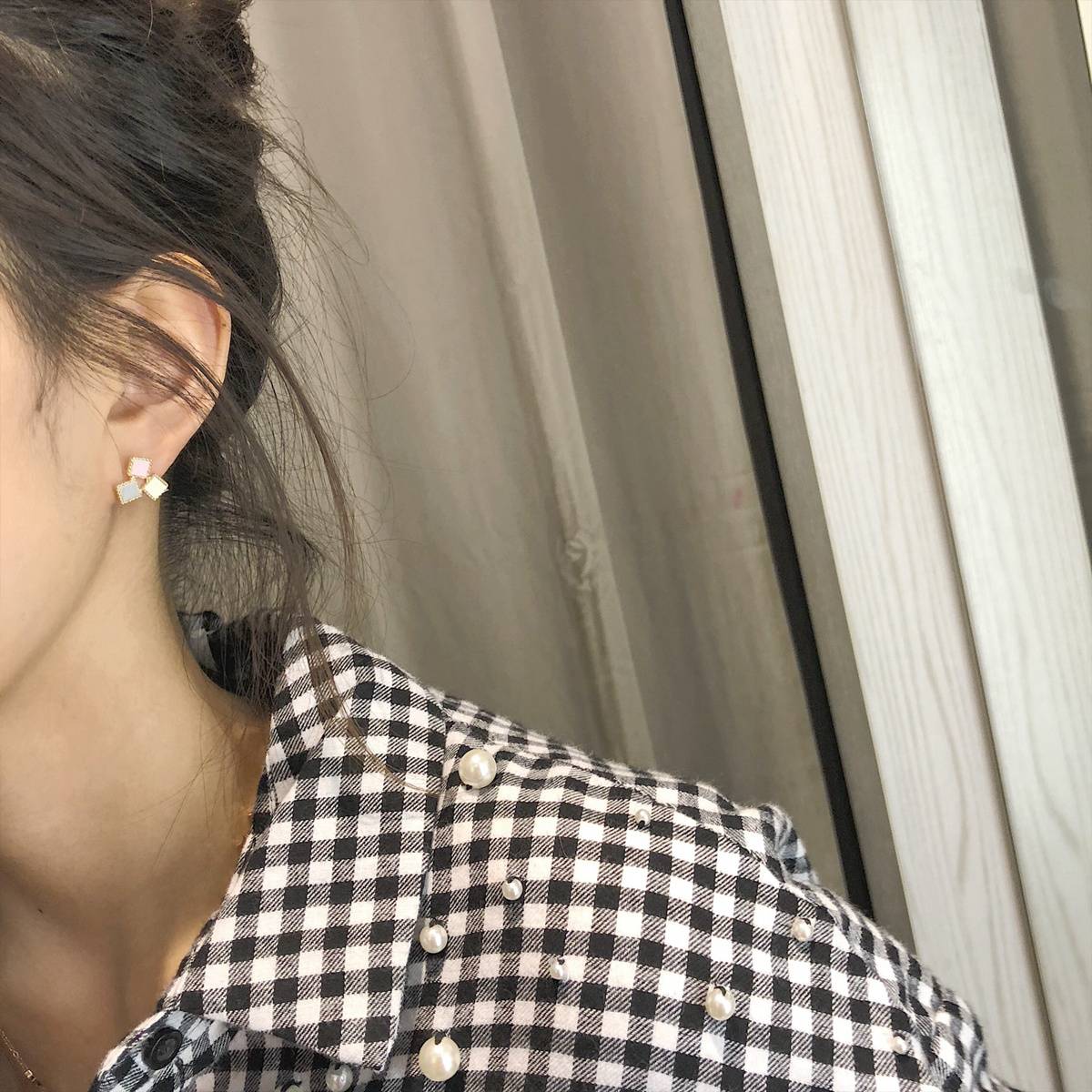 简约方块少女925银针耳环气质耳夹无耳洞韩国短款网红百搭