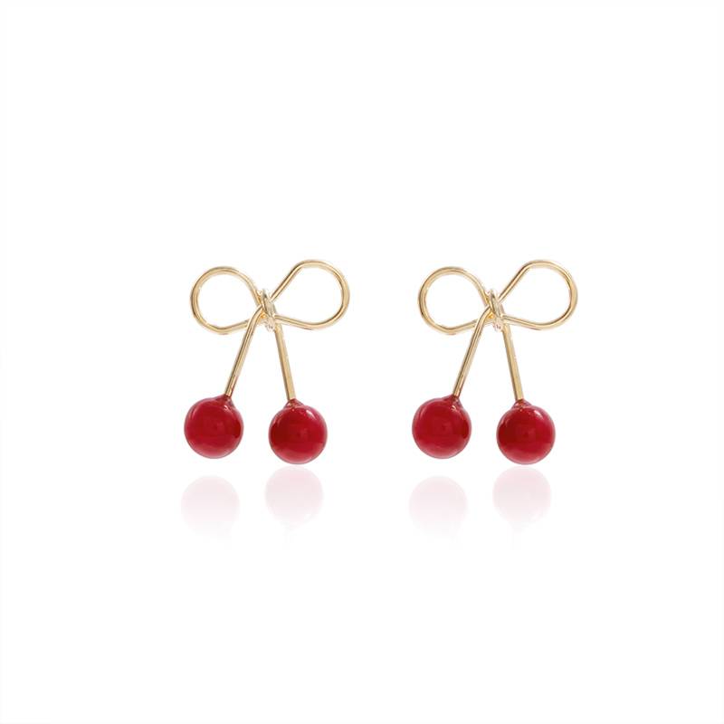 蝴蝶结红色水果樱桃耳钉韩国气质简约小巧可爱耳环2019新款潮耳饰