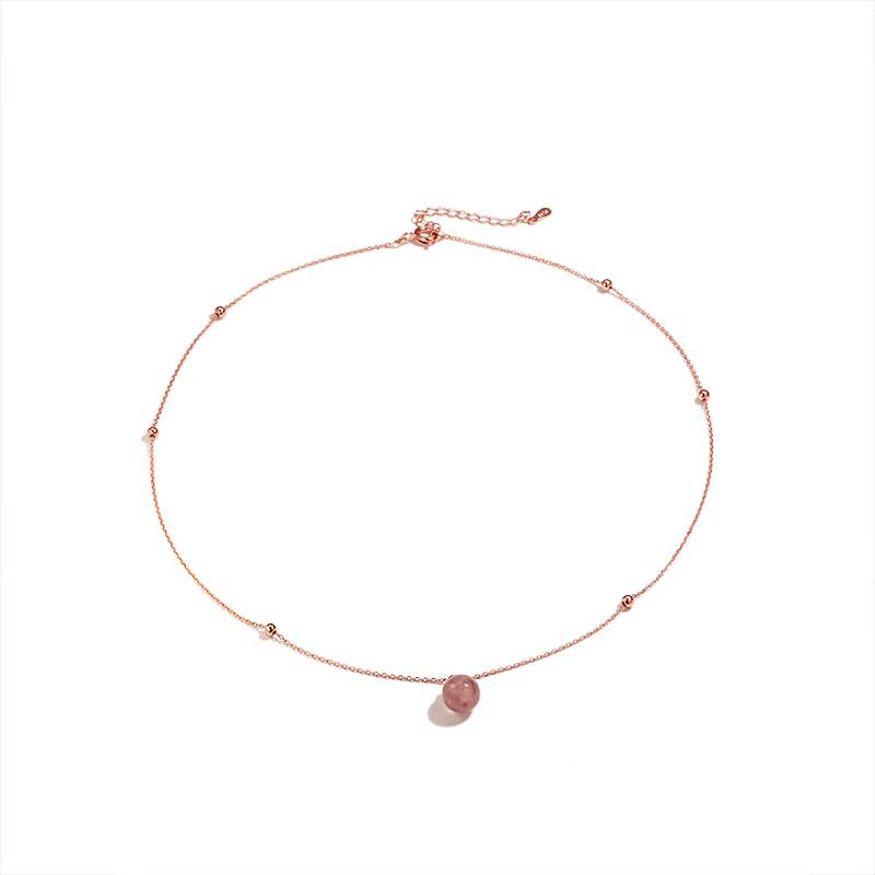 招桃花粉色草莓晶项链女潮韩版气质简约个性网红森系锁骨链脖链