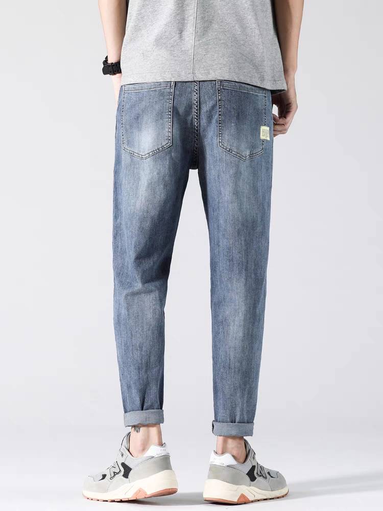 牛仔裤男秋季浅色新款男士宽松直筒潮牌高端弹力九分裤工装长裤子