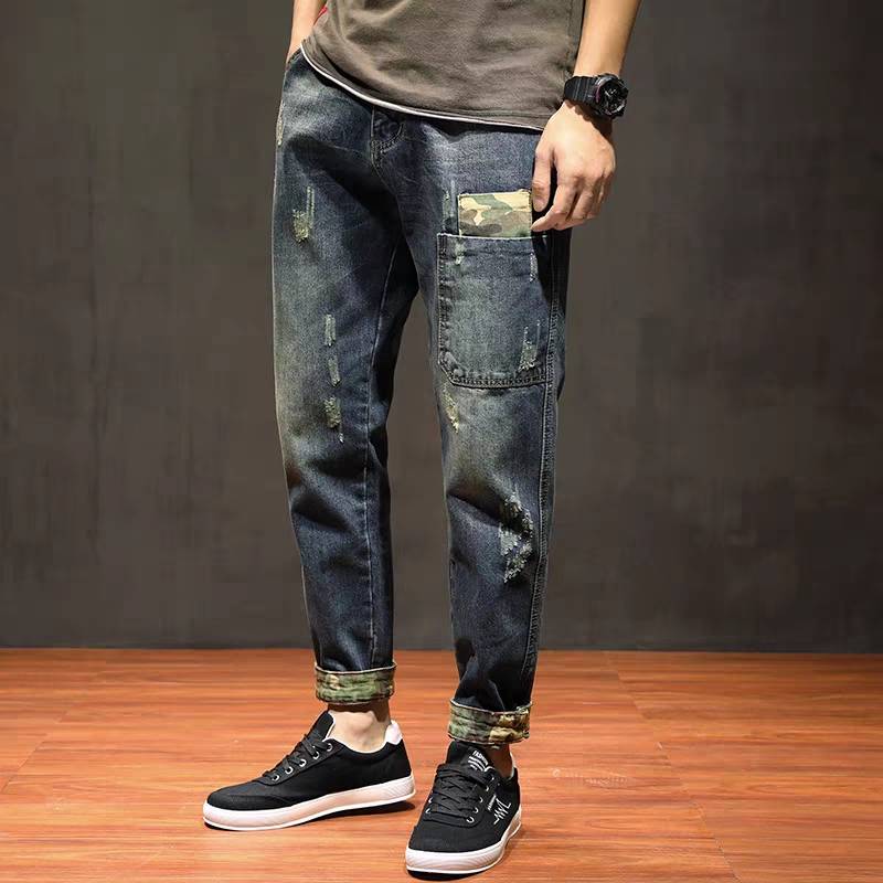 新款港风潮牌牛仔裤男宽松日系复古男裤子四季个性潮流男士哈伦裤