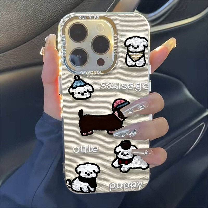 电镀按键线条小狗适用苹果15/14plus手机壳iPhone112/3promax女xr