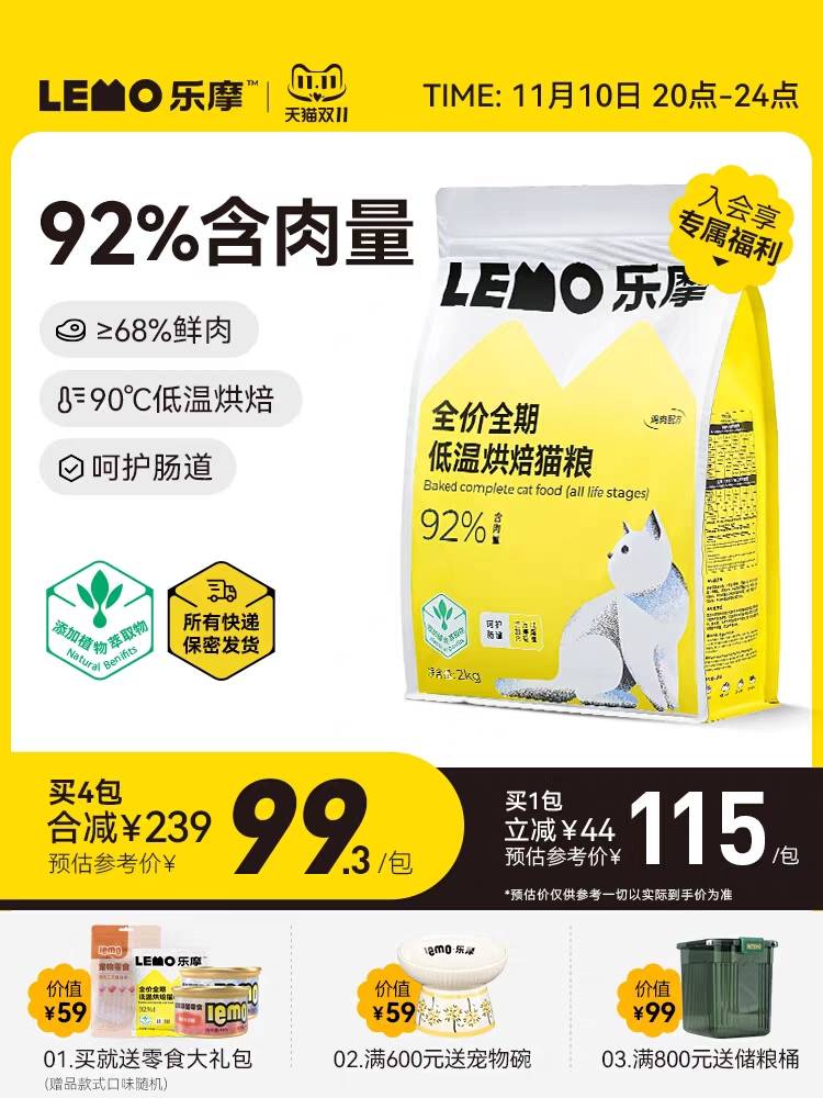 LEMO乐摩全价低温烘焙粮增肥发腮营养无谷幼猫成猫专用植萃猫粮