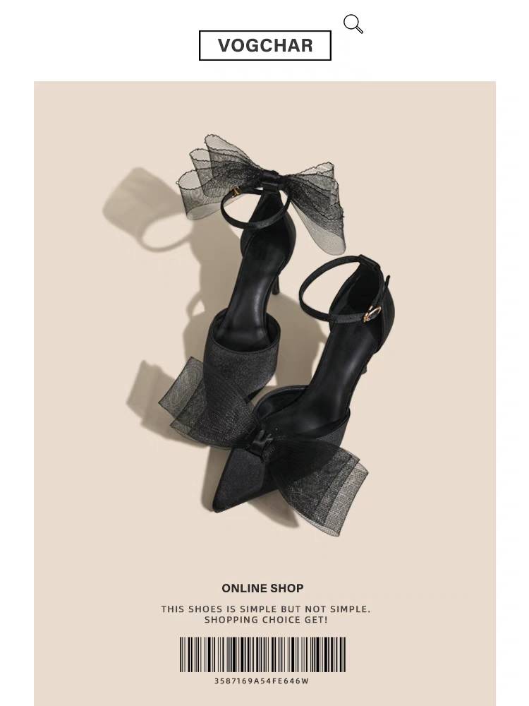 VOGCHAR黑色蝴蝶结高跟鞋仙女2023年新款小众设计感夏天凉鞋细跟