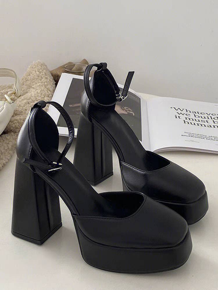 雀色细跟高跟鞋厚底防水台法式玛丽珍女鞋2023年新款绑带尖头单鞋