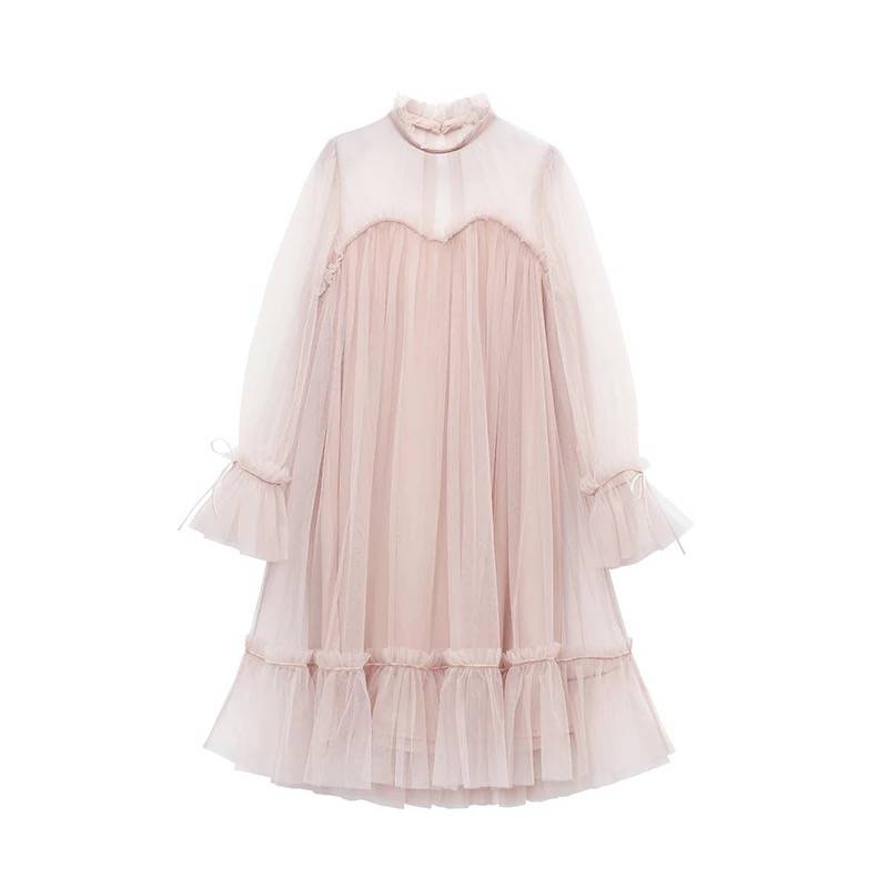 2018春夏新款韩版甜美小清新镂空七分袖V领刺绣连衣裙