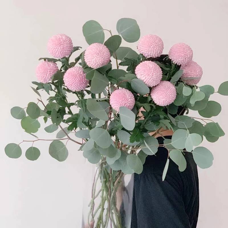 11号套餐:10朵粉色乒乓菊 圆叶尤加利 云南昆明直发家用水养鲜花