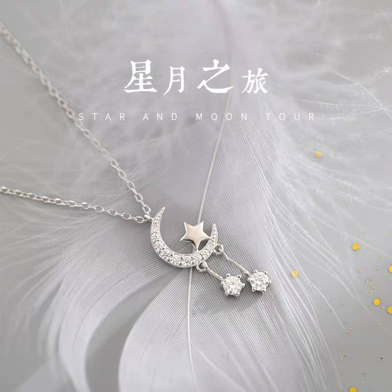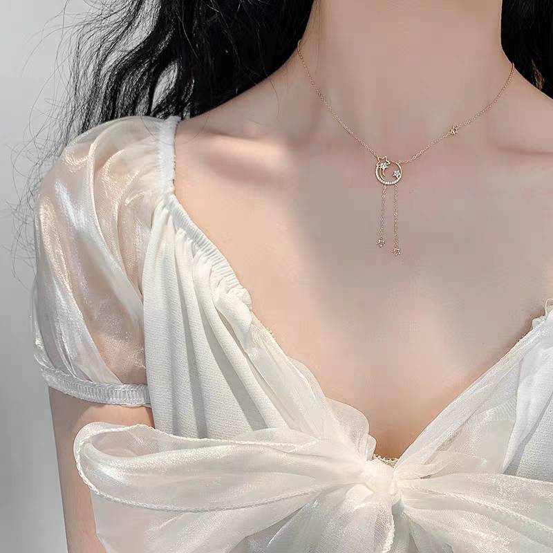 星月项链流苏吊坠女锁骨项链ins风韩版森系项链