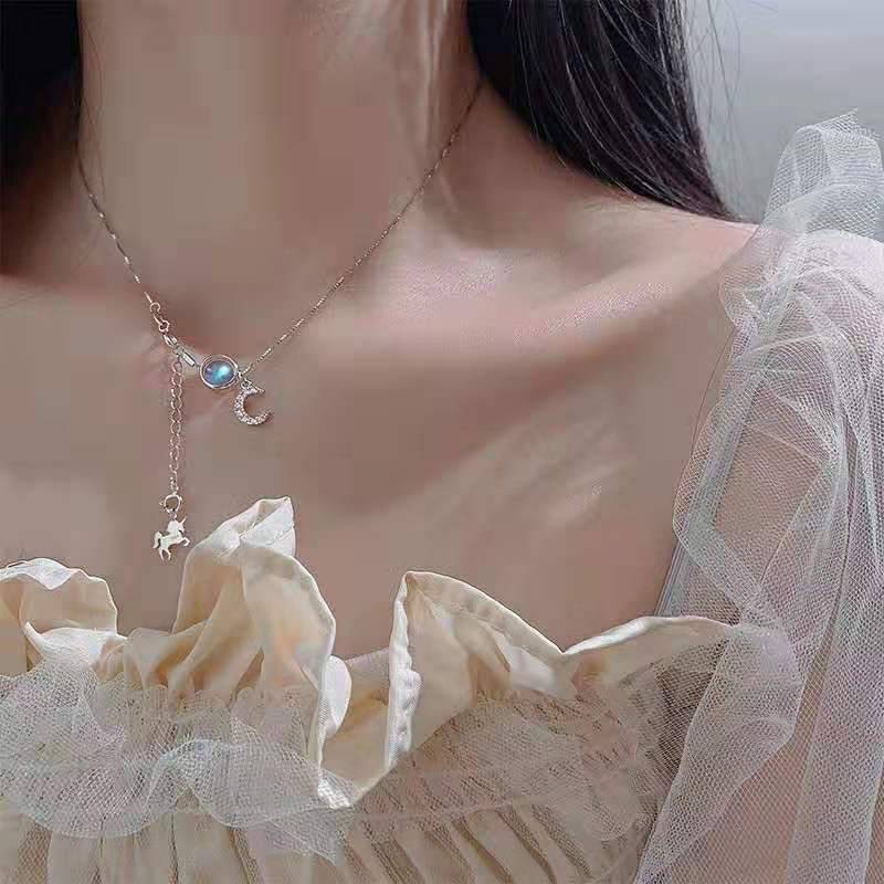 月光钻石项链女简约韩版个性潮流独角兽项链