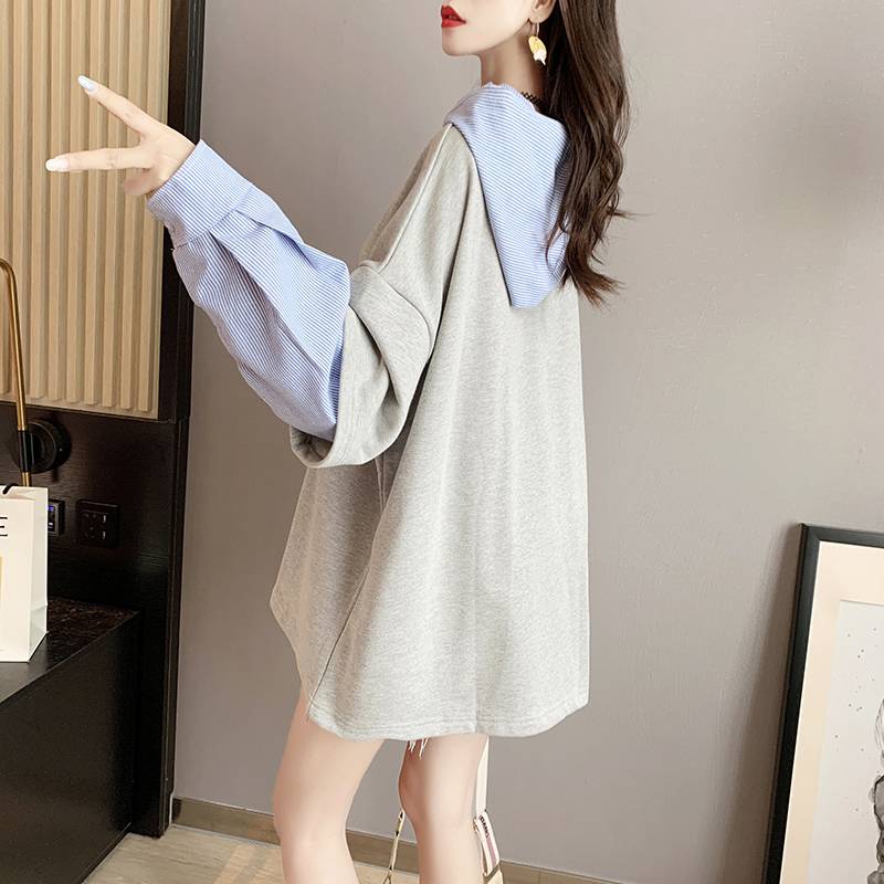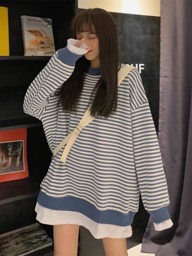 早秋假两件条纹卫衣女2021新款韩版宽松港风下身失踪ins
