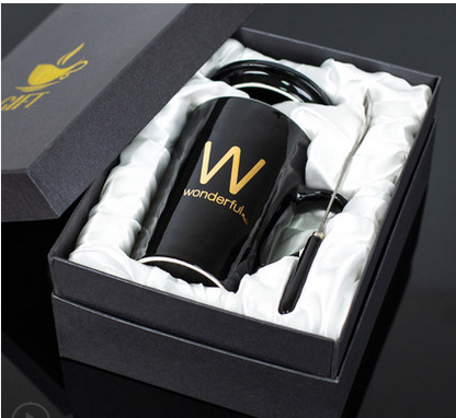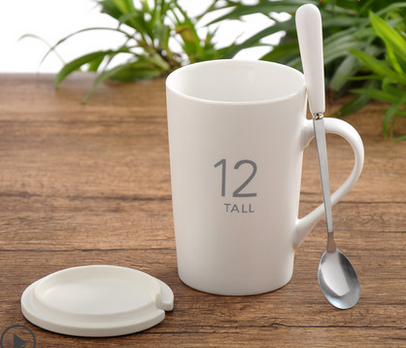创意陶瓷杯子大容量水杯马克杯简约带盖勺咖啡杯牛奶杯