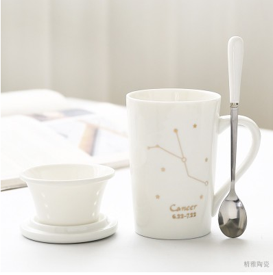 新品简约陶瓷杯 过滤 带盖带勺茶水分离泡茶杯家用马克杯