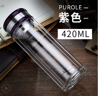 百莱斯双层隔离式茶水分离泡茶杯双层玻璃杯旅行过滤杯子茶水杯