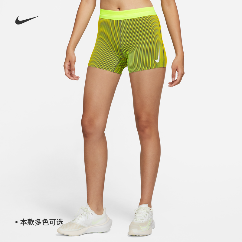 Nike耐克正品女子紧身速干跑步短裤黄色运动裤拼接支撑轻便舒适CJ2368