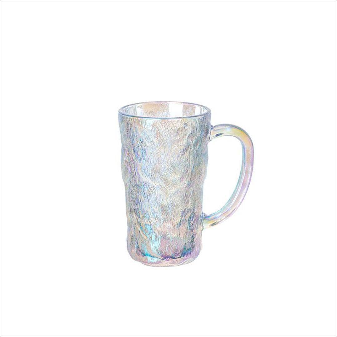 把手冰川杯ins高颜值七彩玻璃杯带盖带勺磨砂款学生家用喝水杯子