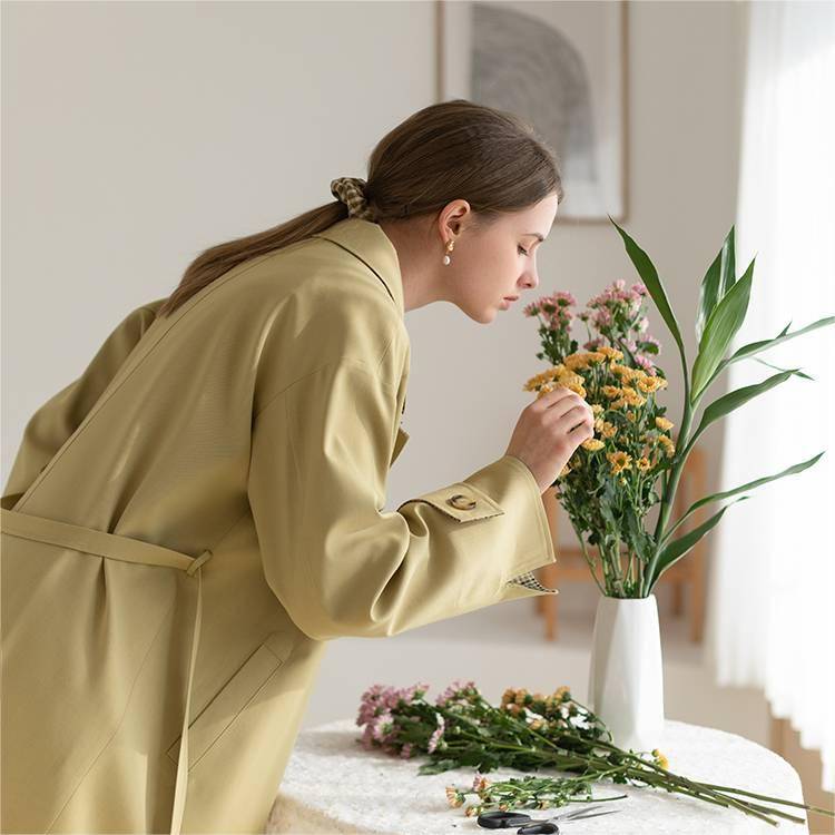 PRICH 2024年春季新款外套轻盈气质优雅中长款显瘦百搭韩版修身系带个性时尚百搭风衣女
