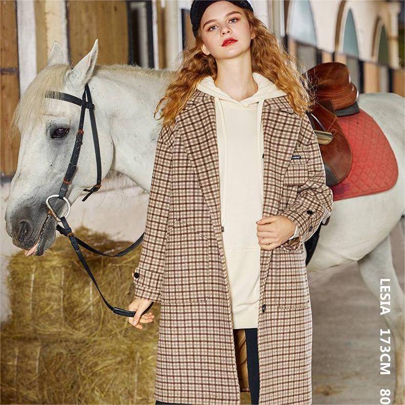 物质女孩经典格纹大衣女2024年新款春季复古直筒宽松温柔百搭翻领防风保暖毛呢学生外套