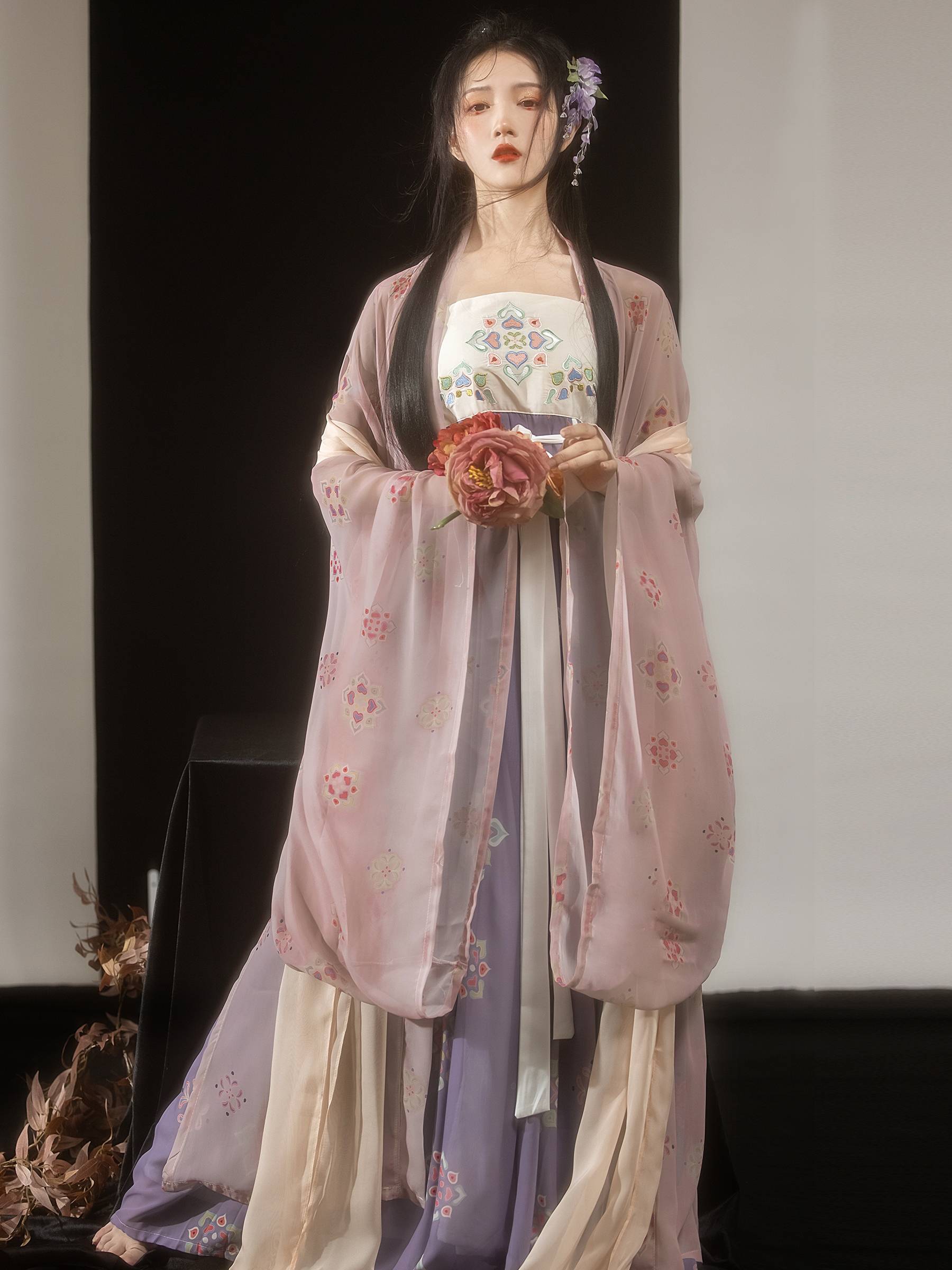 2021秋季新款古风唐朝汉服复原绣花诃子裙大袖衫披帛印花夏秋季薄款