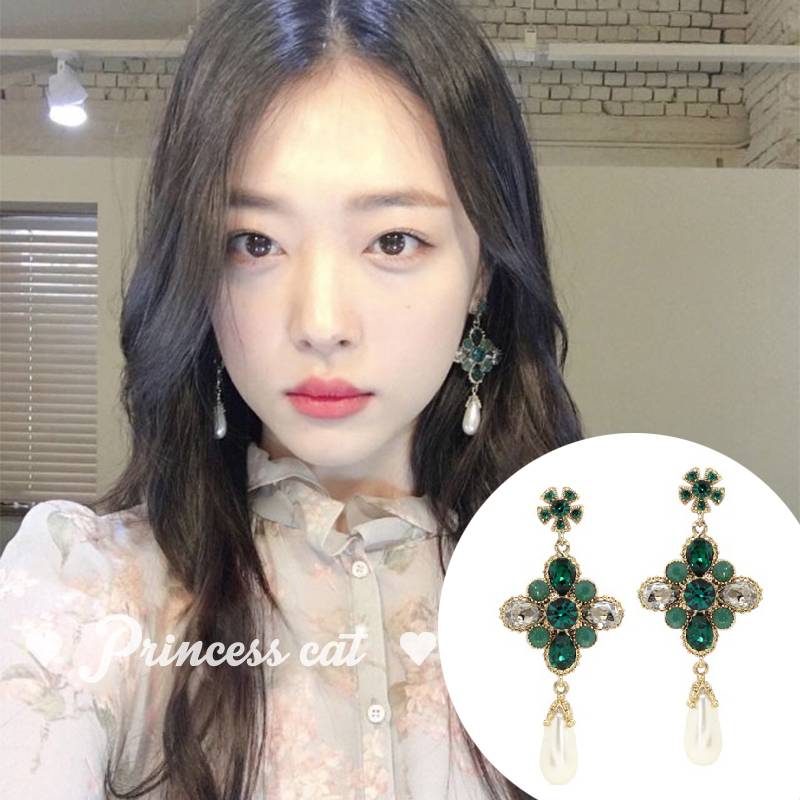 lemon 复古少女 祖母绿宝石珍珠长款崔雪莉同款 耳钉耳环 32.00 已售:5件