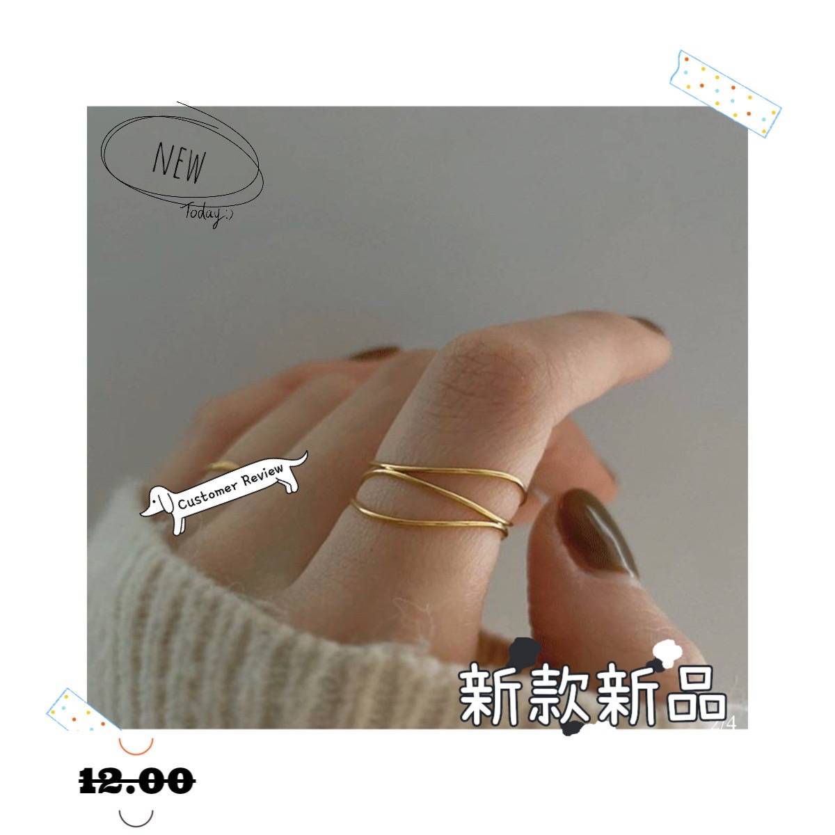 法式ins三层细线条交织设计感几何个性钛钢镀18K金食指戒指女