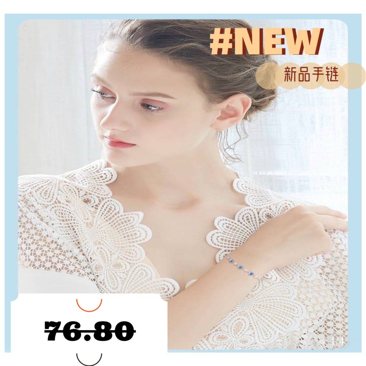 西黛尔新款海洋之心手链女S925银手链采用施家奥地利水晶元素手饰