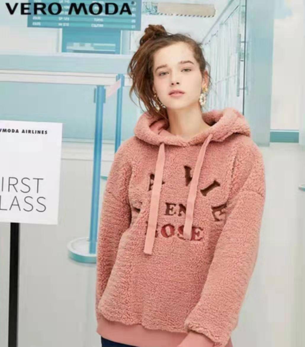 Vero Moda2019秋冬新款ins风可爱厚款泰迪绒连帽卫衣女