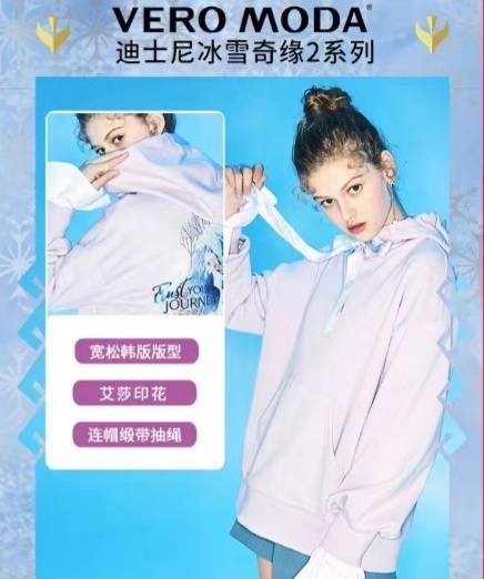 Vero Moda冰雪奇缘2联名合作款首发人物图案闪粉胶印连帽卫衣女
