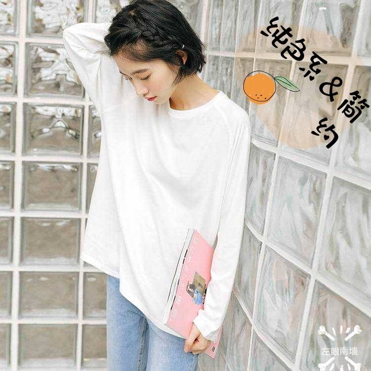 【左眼南墙】2020早秋新款韩版马卡龙色系百搭长袖圆领纯色少女T恤学生打底衫