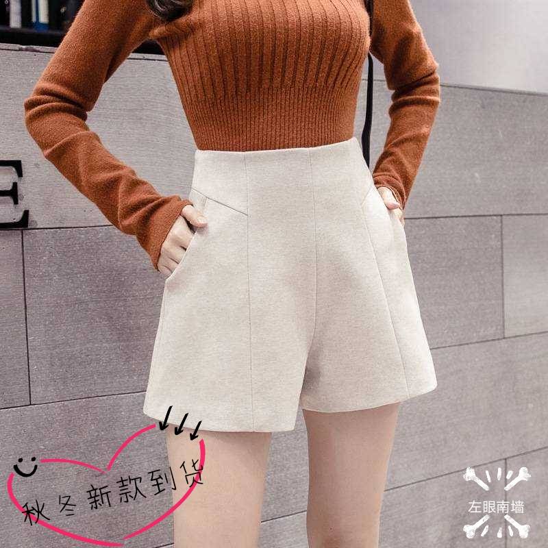 【左眼南墙】2020冬新款高腰毛呢短裤简约阔腿a字日常宽松休闲外穿靴裤