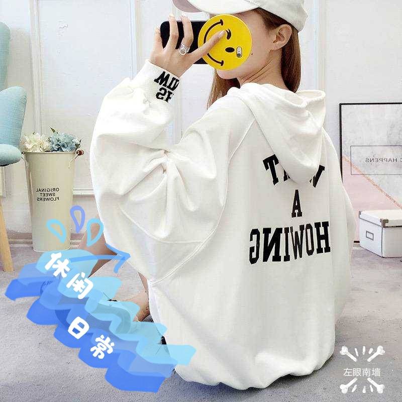 【左眼南墙】2020早秋新款宽松纯色印花薄款大码运动休闲简约时尚卫衣女