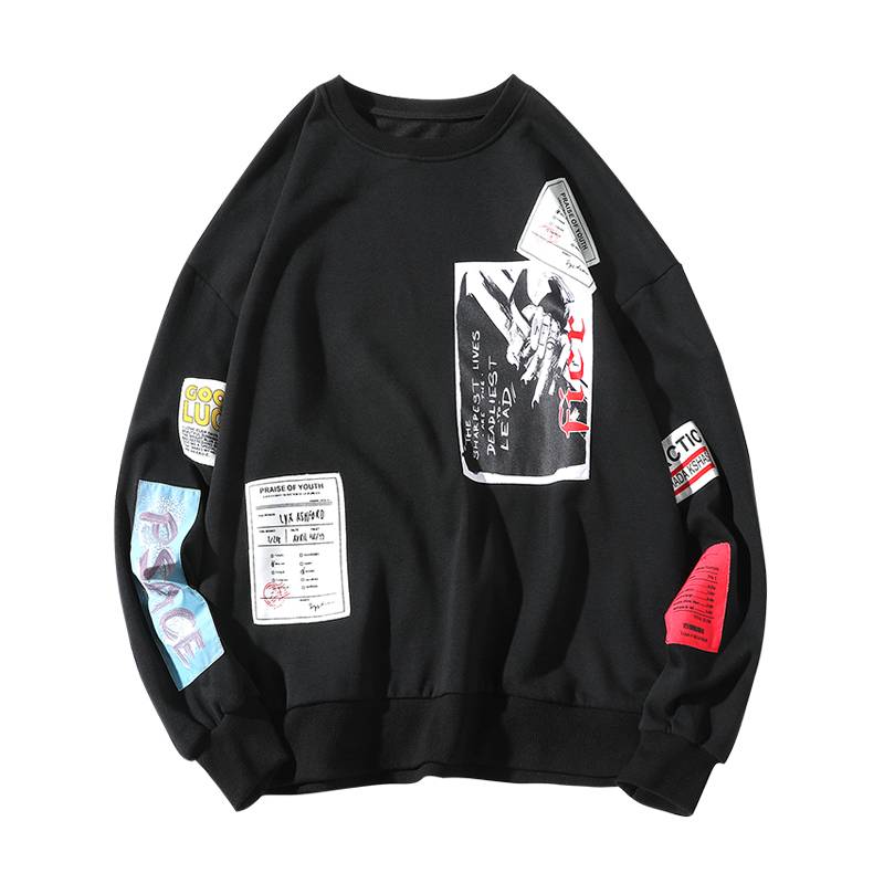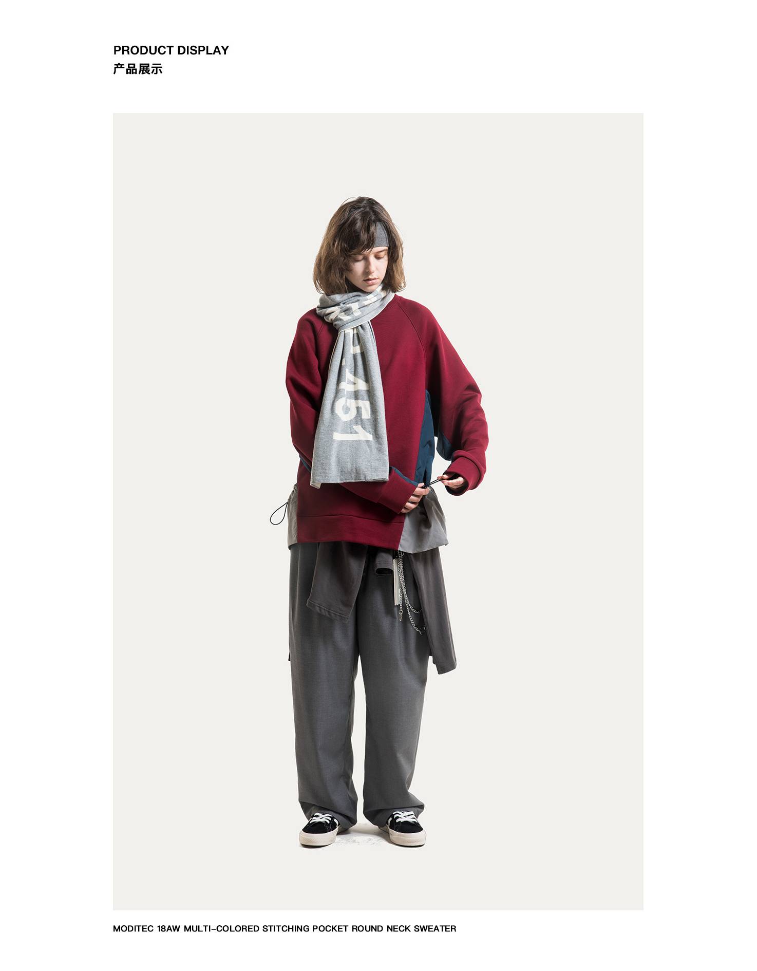 MODITEC 18AW 玛瑙红异色拼接插肩口袋圆领卫衣 宽松剪裁OVERSIZE