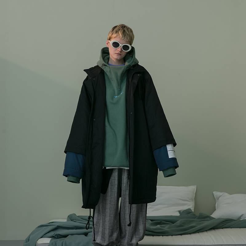 嘻哈潮牌国潮 FYP 假两件杜邦情侣长款棉衣外套