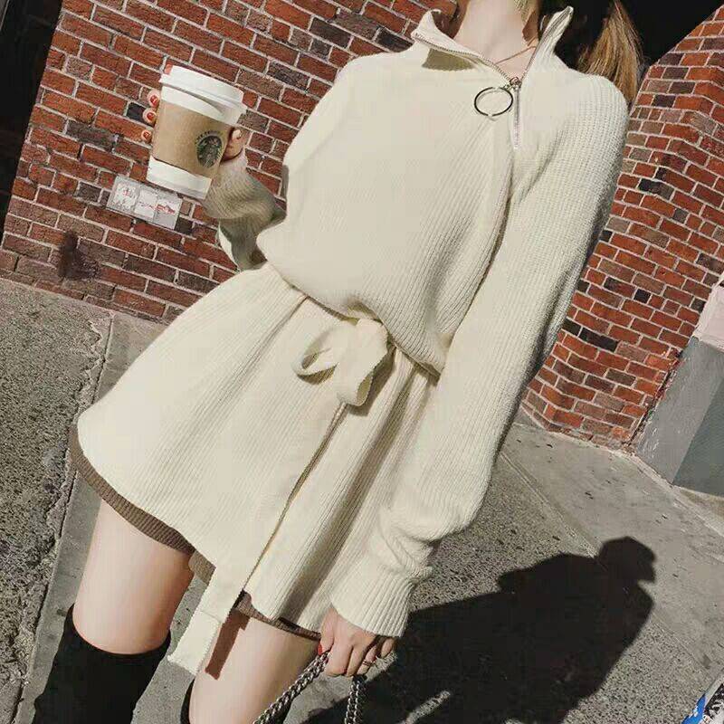 女神范半裙两件套装连衣裙2018秋冬新款毛衣配裙子加时尚气质高冷