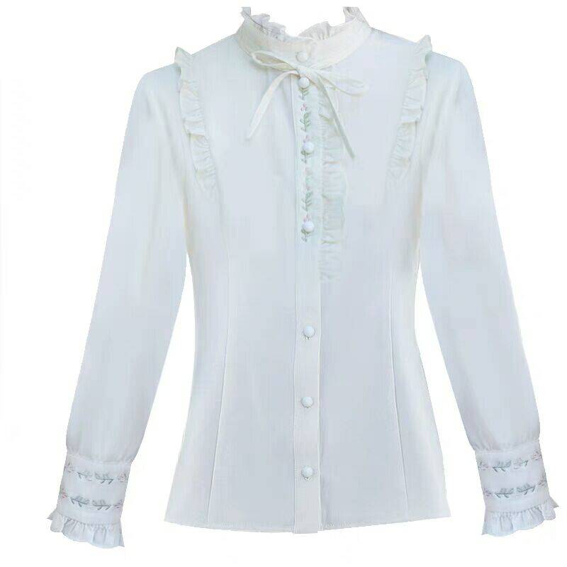加绒加厚衬衫2018秋冬T恤女装森系百搭仙女刺绣修身显瘦打底上衣