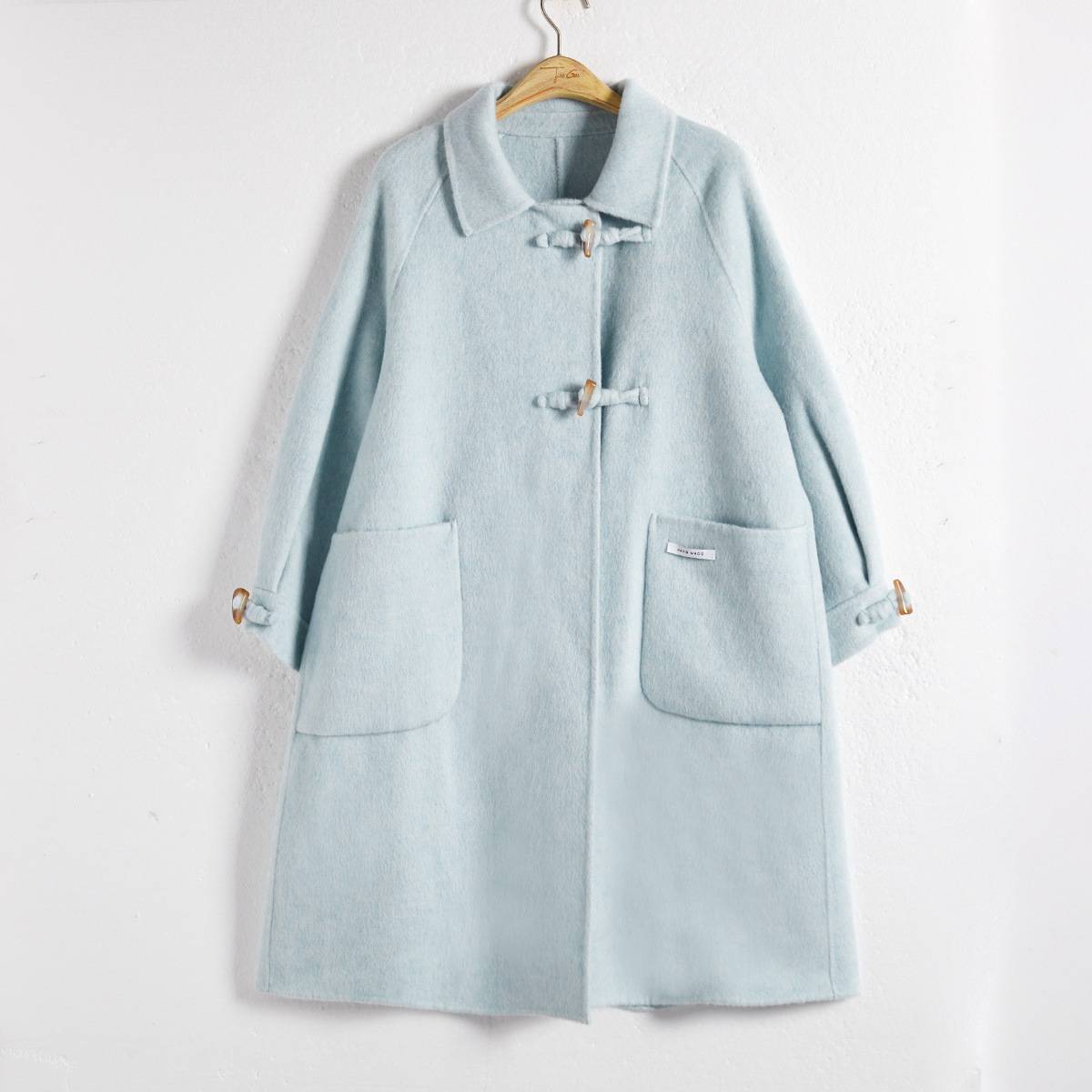2020年秋冬新款韩版双面呢手缝长款羊毛大衣单排扣中长款毛呢外套